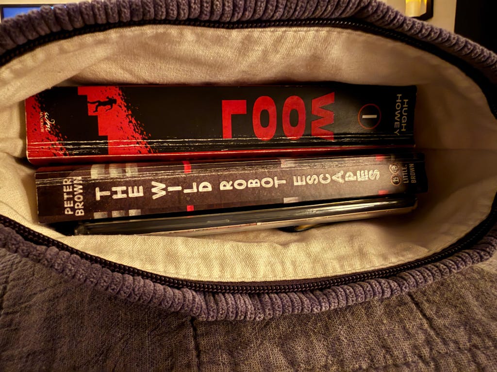 LOVE LOVE LOVE! This is whatever book worm needs if they have a reading pile. It comfortably fits two paperbacks totally 600 pages and my kindle zipping with no issues!